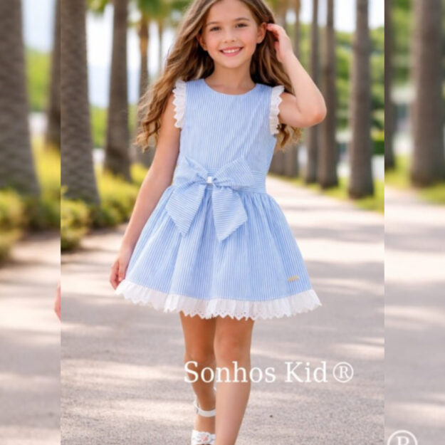 Vestido riscas com laço