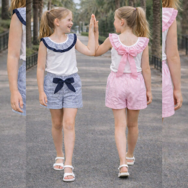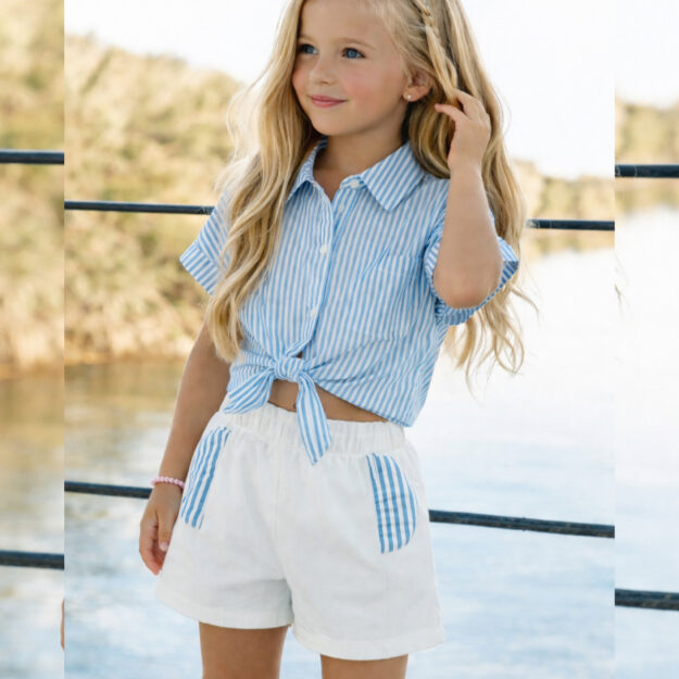 Conj calção riscas com laço