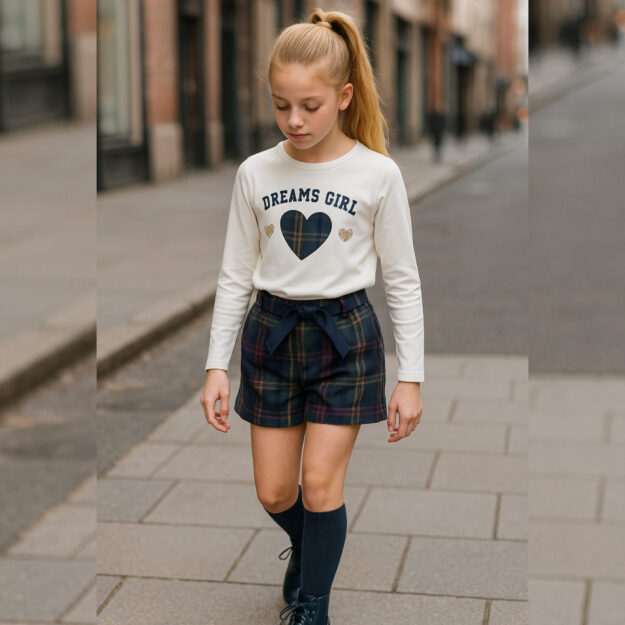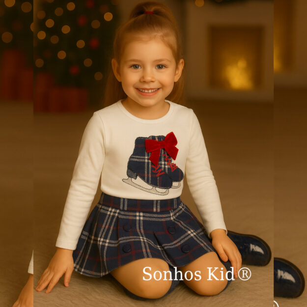 Conj saia xadrez com calção