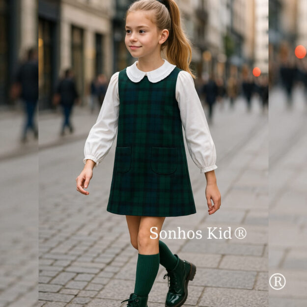 Vestido xadrez botões