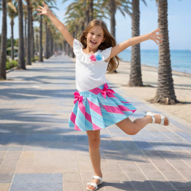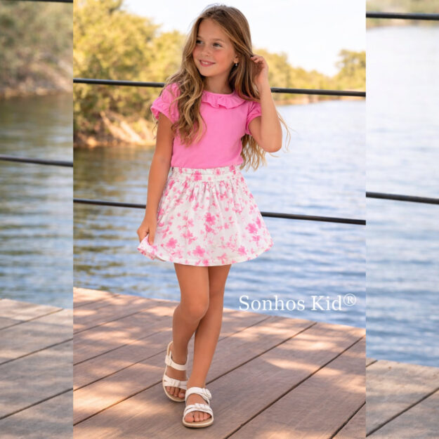 Conj menina saia folhos