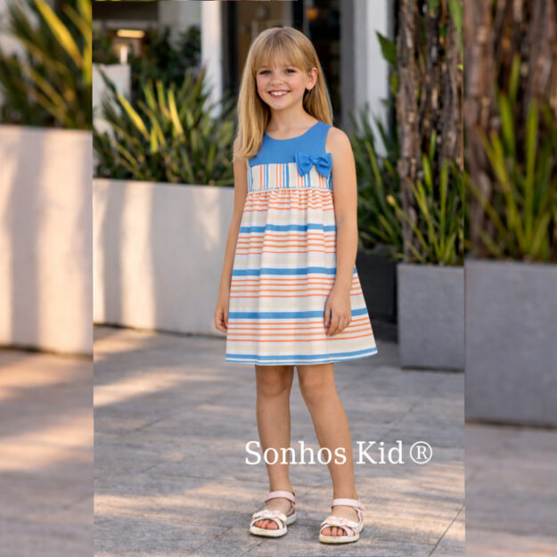 Vestido riscas com laço