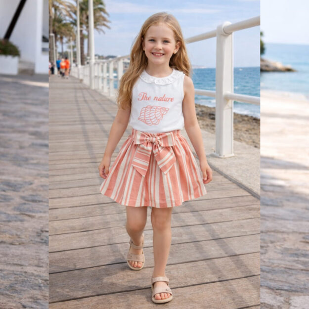 Conj menina saia riscas coral