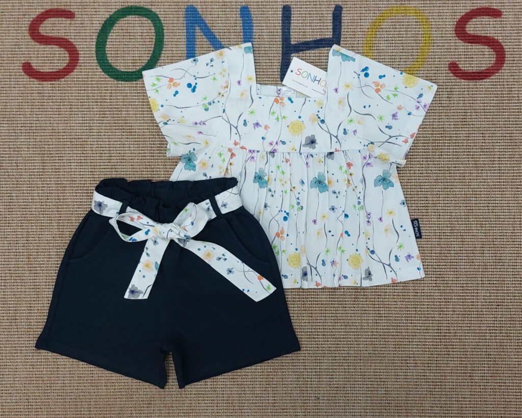 Conj calção floral